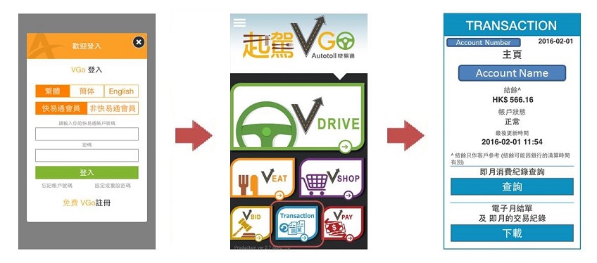 會員除了可以選擇於網上使用「每日消費紀錄」查詢功能,亦可於手機應用程式《起駕VGo》查詢最新的「戶口結餘」及「消費紀錄」,享受方便快捷的查詢服務。 Members can now use the "Daily Transaction" function on website or check their "Account Balance" & "Transaction Record" through our mobile App VGo in order to enjoy our convenient service.